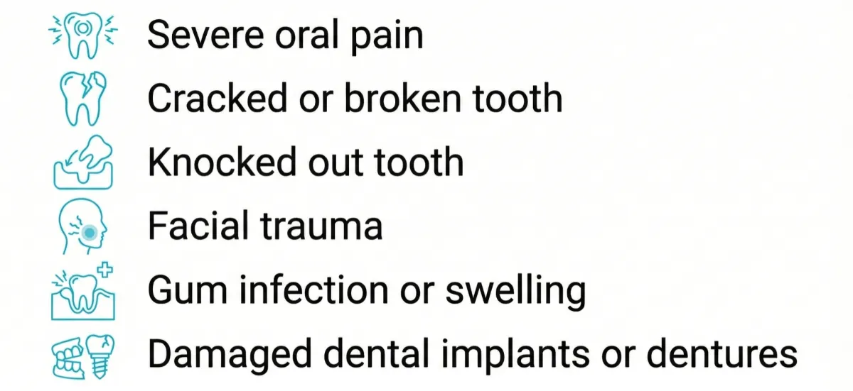 When a dental problem hits suddenly, it’s usually a sign that something needs attention now, not later. Here are the most common emergencies we treat every day: